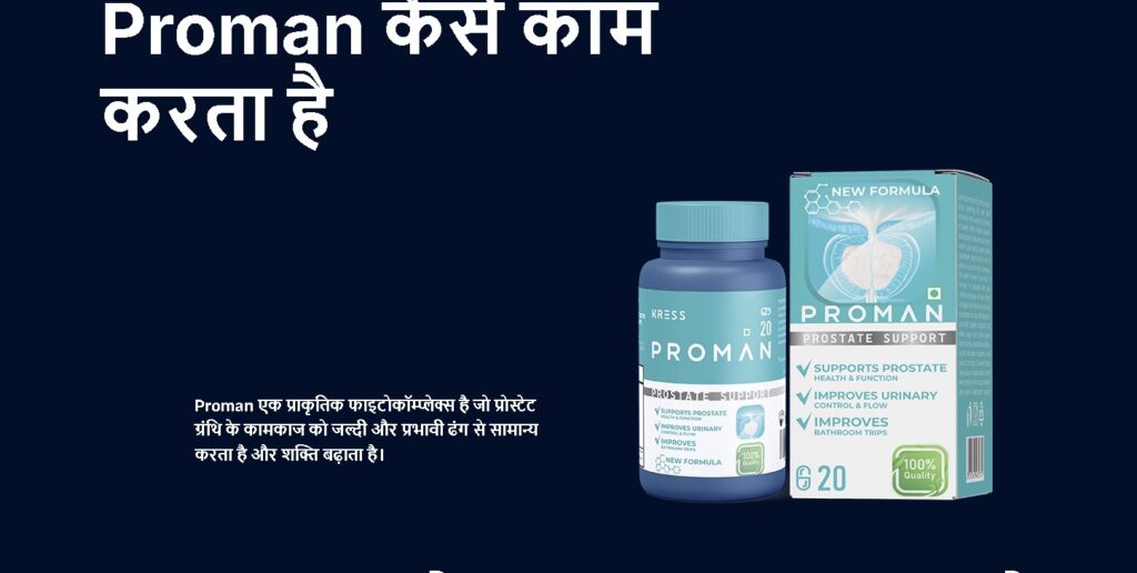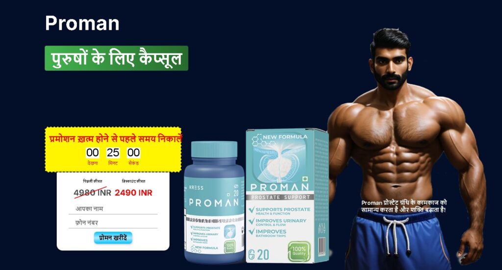 Proman Capsules (प्रोमन कैप्सूल) एक विशेष रूप से विकसित न्यूट्रिशनल फॉर्मूला है, जिसे प्रोस्टेट स्वास्थ्य, मूत्र प्रवाह और पुरुष जीवनशक्ति को बनाए रखने के उद्देश्य से तैयार किया गया है। यह दवा नहीं है, बल्कि आहार अनुपूरक है।